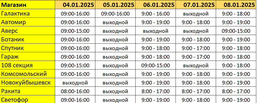 График работы В НОВОГОДНИЕ